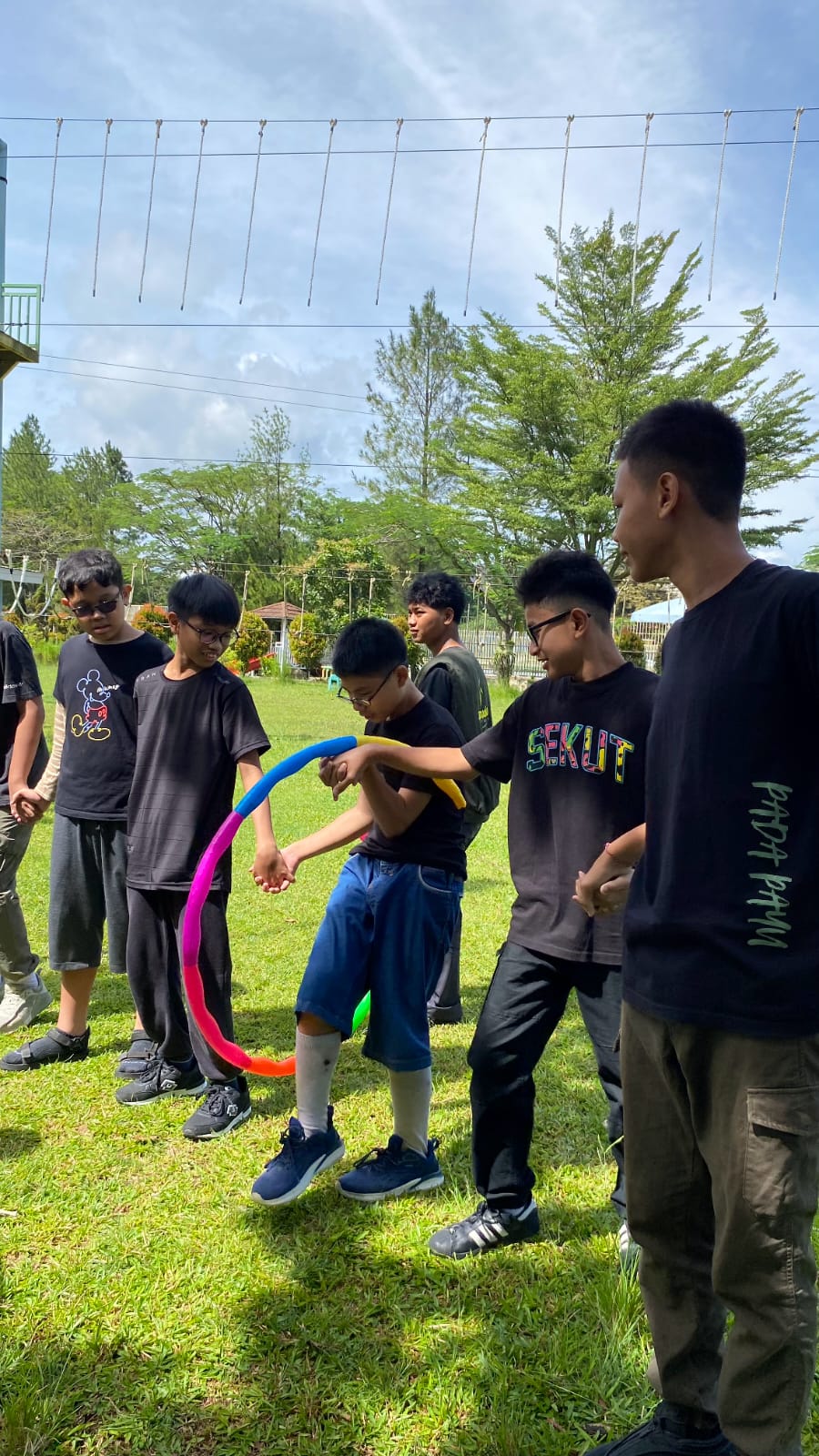 Setelah semua kegiatan outbound selesai, murid-murid mendapat waktu istirahat yang diisi dengan acara makan siang dan berganti pakaian karena akan permainan basah-basahan. Permainan basah-basahan ini, seperti menangkap ikan dan mengisi pipa yang bocor, disambung dengan kegiatan berenang. Murid-murid terlihat menikmati waktu bersama di Sapadia. Setelah berenang, murid-murid membilas diri dan menikmati beberapa camilan penutup, yaitu bakso, pizza, dan snack lainnya. Setelah acara selesai, murid-murid pulang ke sekolah. Kegiatan ini mengajarkan pada siswa dan siswi untuk kerja sama dengan sesama, mengasah kreativitas, menyusun strategi, melatih kemandirian, serta membentuk karakter yang lebih baik.
