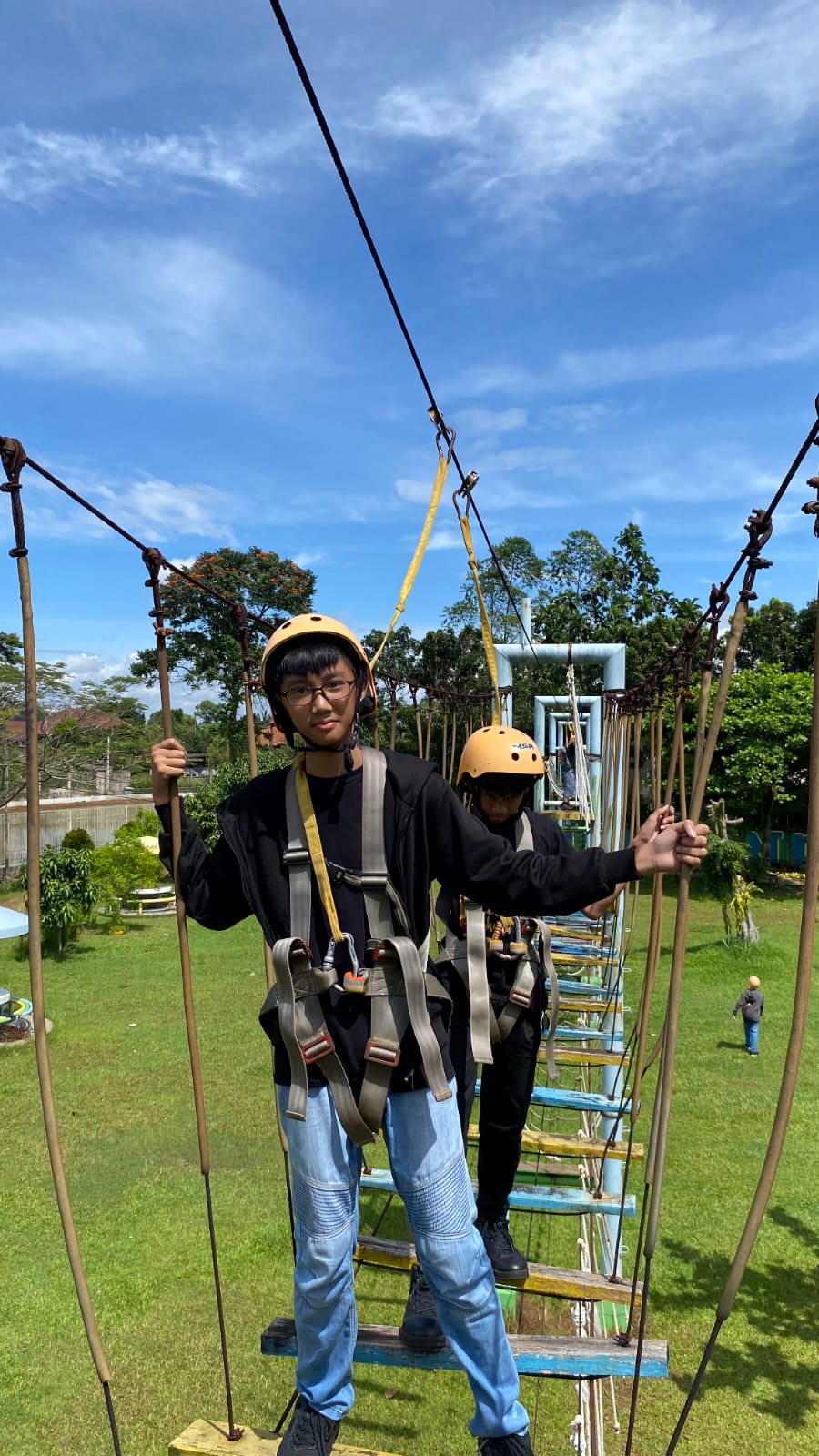 Perjalanan menuju lokasi outbound menempuh waktu 1 jam 20 menit dengan menggunakan dua mobil brimob untuk kelas A dan kelas B. Setiap mobil memuat 27 orang, dengan 25 peserta didik dan 2 orang guru pendamping. Setelah sampai di lokasi, murid-murid disambut tim Sapadia dan dipersilakan menikmati welcome drink, sembari bersantai menikmati welcome drink, dan suasana lingkungan sekitar sebelum kegiatan mulai. Acara outbound dimulai ketika murid-murid sudah melakukan pemanasan, sesudah pemanasan, kami dibagi menjadi empat kelompok. Ada dua kelompok yang melakukan outbound challenge dan ada dua kelompok yang melakukan outbound education. Outbound challenge terdiri dari tantangan melewati beberapa tali yang dipasang cukup tinggi. Lalu, outbound education terdiri dari permainan kerja sama seperti, memindahkan tepung secara bergilir ke belakang, tarik tambang, estafet hula hoop, meniup gelas plastik, menyalakan petasan menggunakan tali, serta mengaitkan besi pada besi lainnya. Murid-murid melakukan kedua aktivitas tersebut secara bergantian.